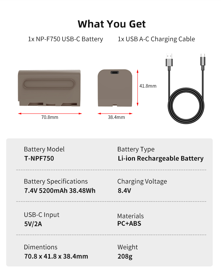 / KingMa USB-C Input NP-F750 5200mAh Battery with Protective Box for Sony